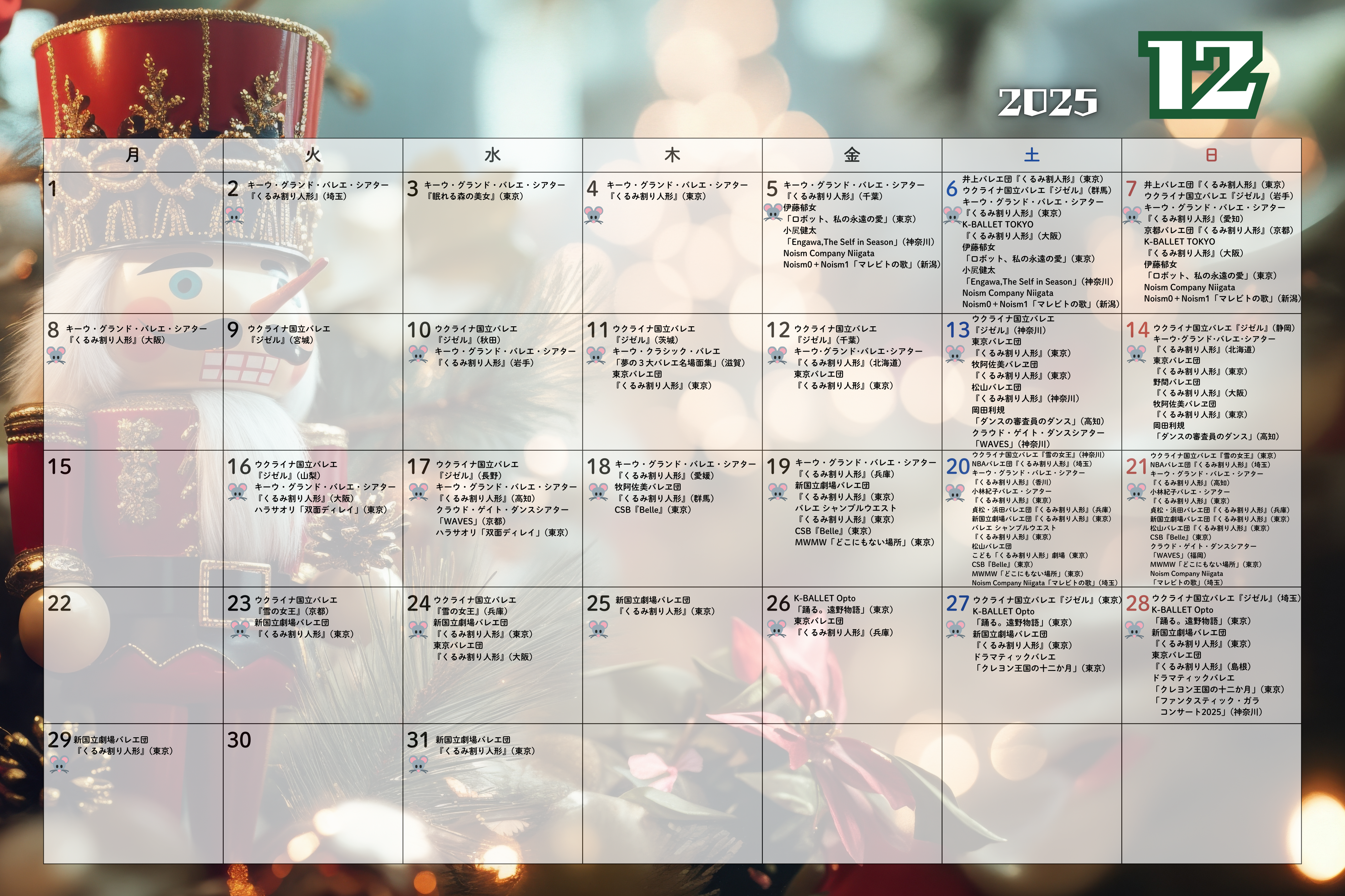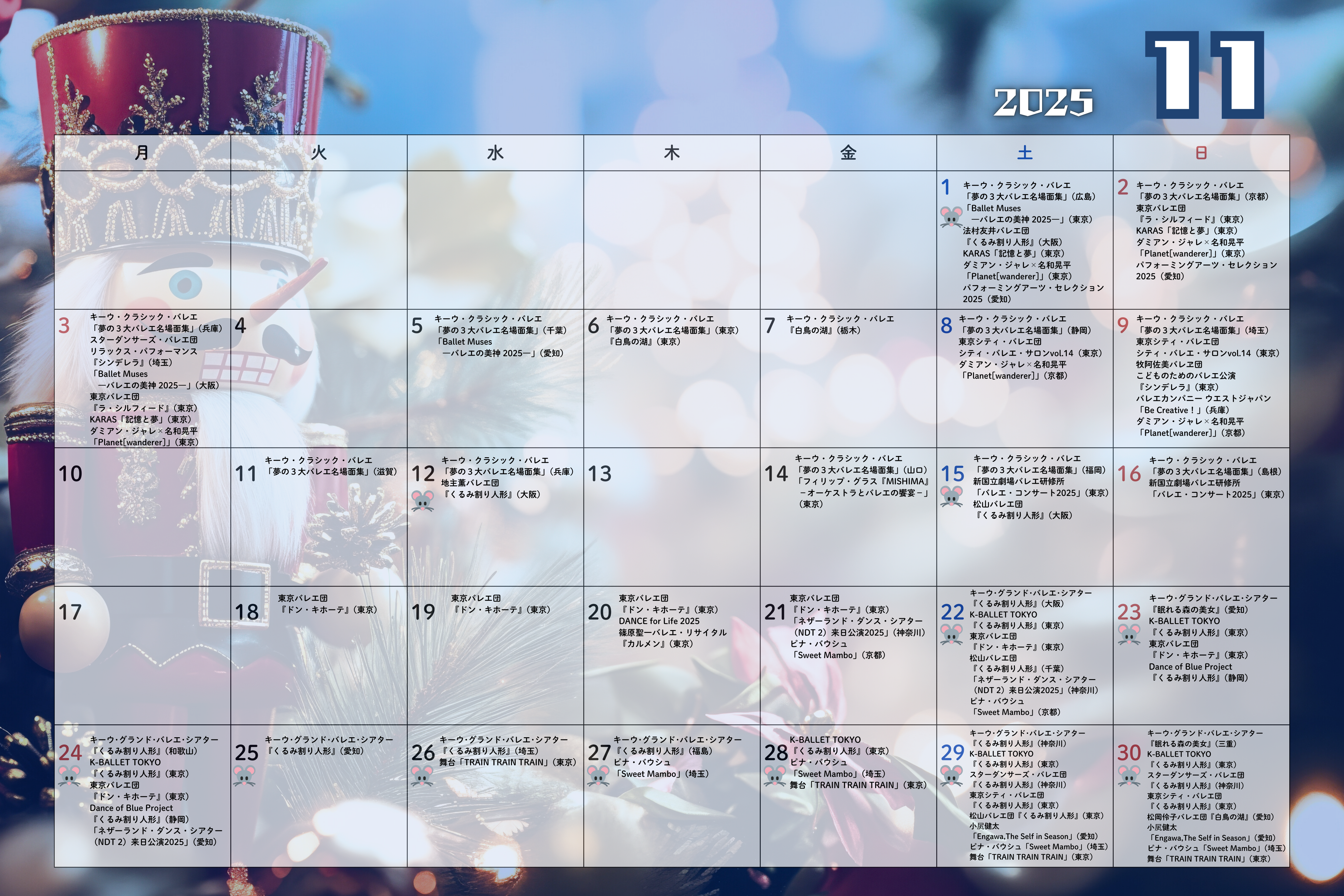 【2025年11月~2026年1月】国内バレエ公演&「くるみ割り人形」カレンダー♪