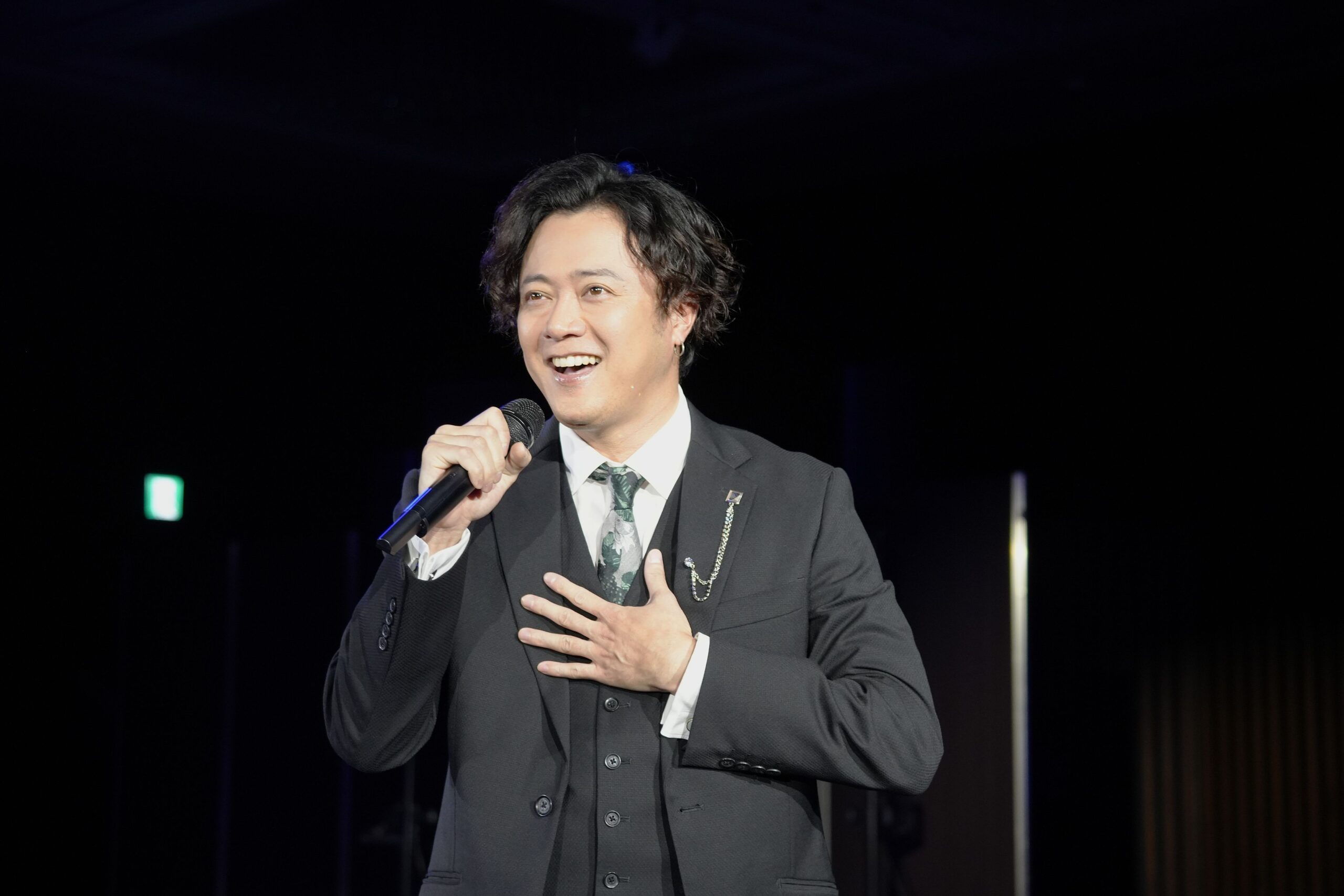 トップバッターは今回が初出演となる上川一哉。客席後方から登場し、美しい低音でオーディエンスの視線を集めました。ステージでは大貫勇輔が上川を迎え入れ、小野田龍之介、朝夏まなと、濱田めぐみが加わり、美しいハーモニーを披露。