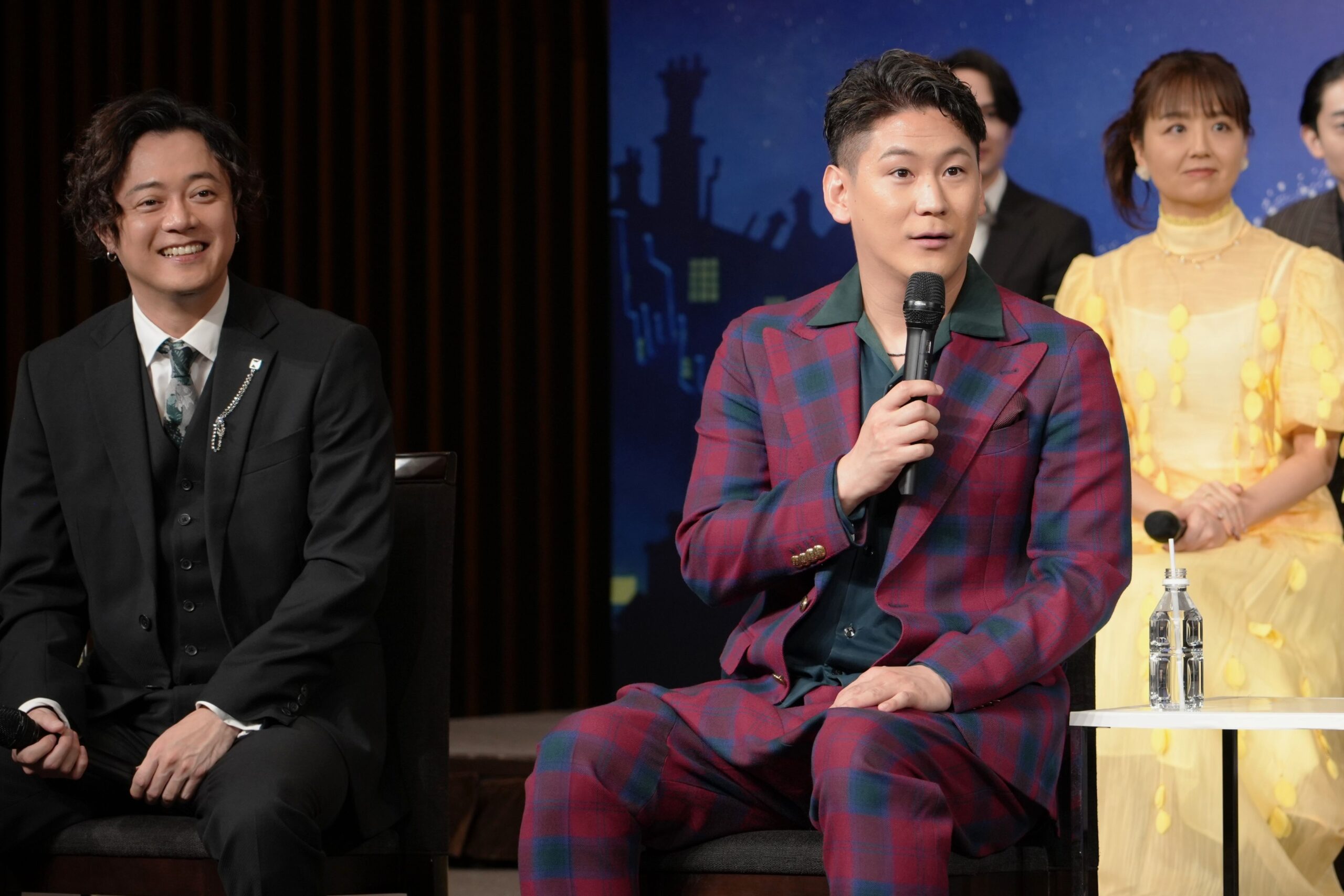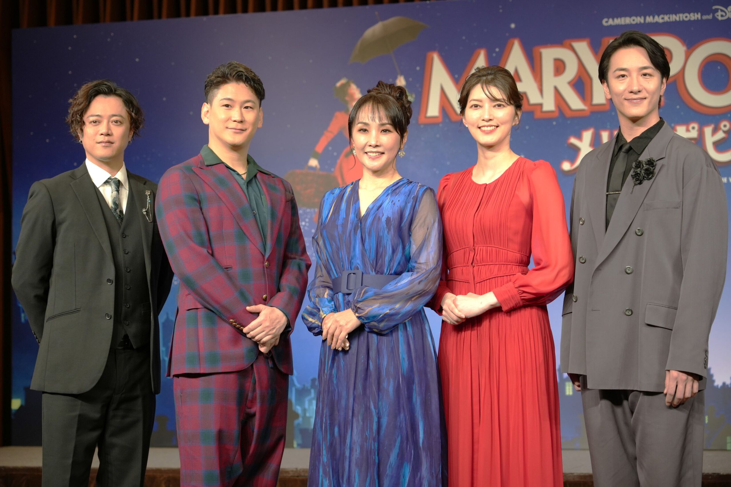ストーリーテラーのバート役を演じるのは、初演から続投の大貫勇輔、バート役は2回目となる小野田龍之介、そして初参加の上川一哉の3名。大貫は半数のキャストが一新されることについて、「初心に戻った気持ちで、このカンパニーの新しい舞台を作り上げていきたい」と頼もしい回答。小野田は映画版でバートを演じたディック・ヴァン・ダイク氏が100歳を迎えたことに触れ「このメッセージは届くことはないと思うんですけれども(笑)、映画のリスペクトを忘れずに、100歳のエネルギーをいただいて日本版らしい作品を作りたいです」。上川は「パート役の3人の中では僕がいちばん年上なんですが、いちばん若い気持ちでお2人から色々学ばせていただきます」とコメント。