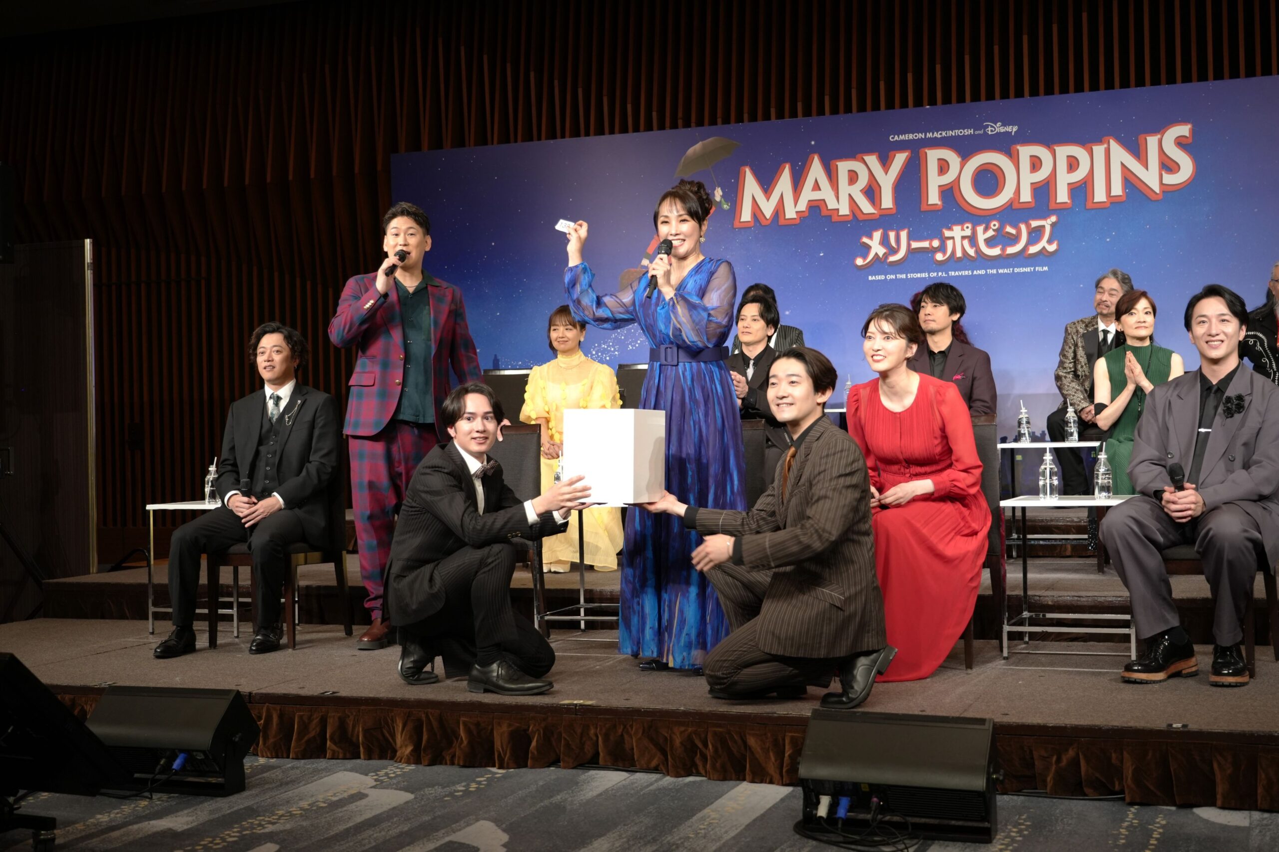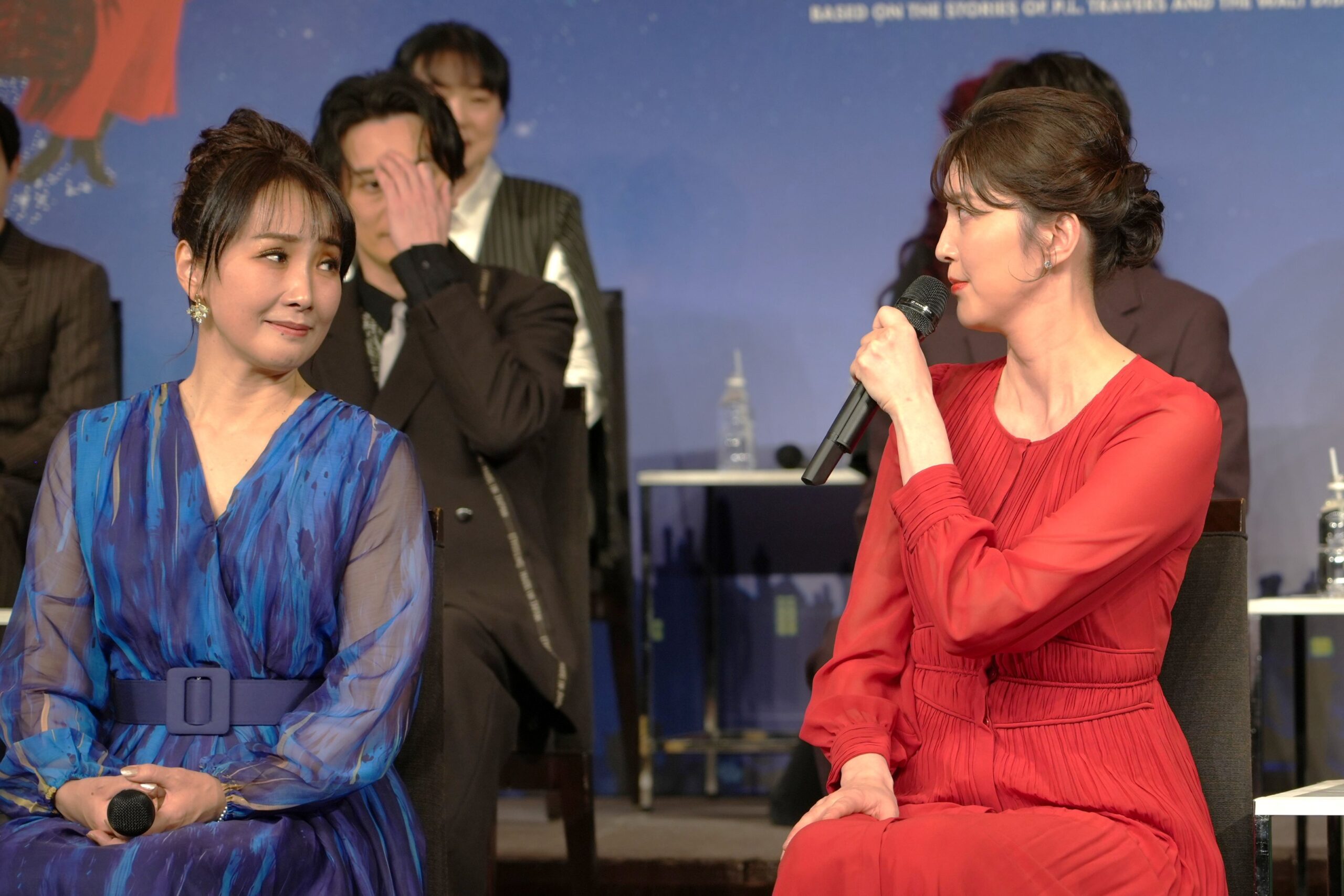 主人公のメリー・ポピンズ役はトリプルキャスト。3度目の主演を務める濱田めぐみは「たくさんのエネルギッシュで素敵なメッセージを届けられると思います」と挨拶。朝夏まなとは今回が初役。2018年の濱田のメリーを観て大感動し、いつかこの作品に携われればと願っていたそう。「お仲間に入れていただけて幸せです」と高揚したようすで語りました。