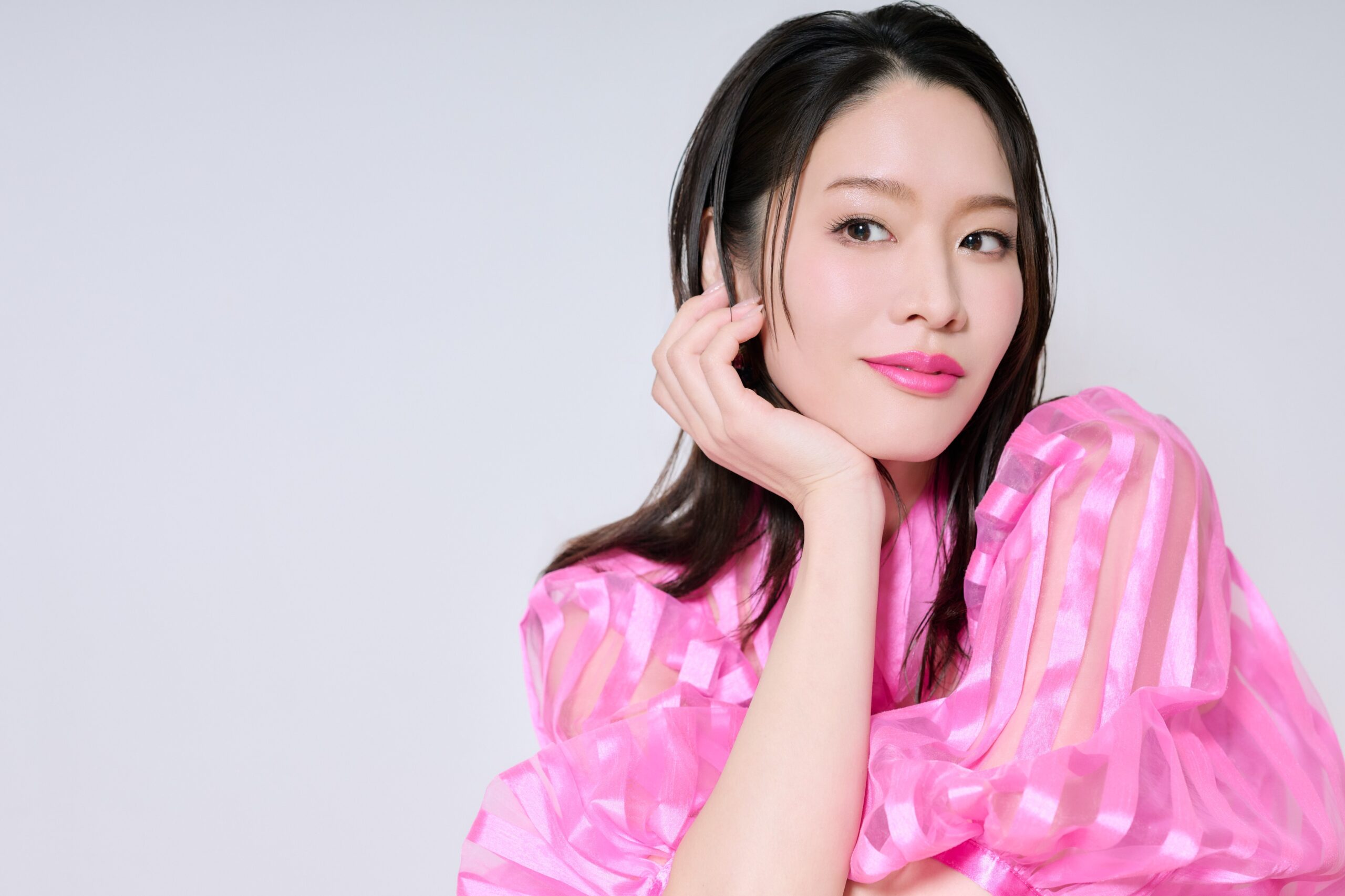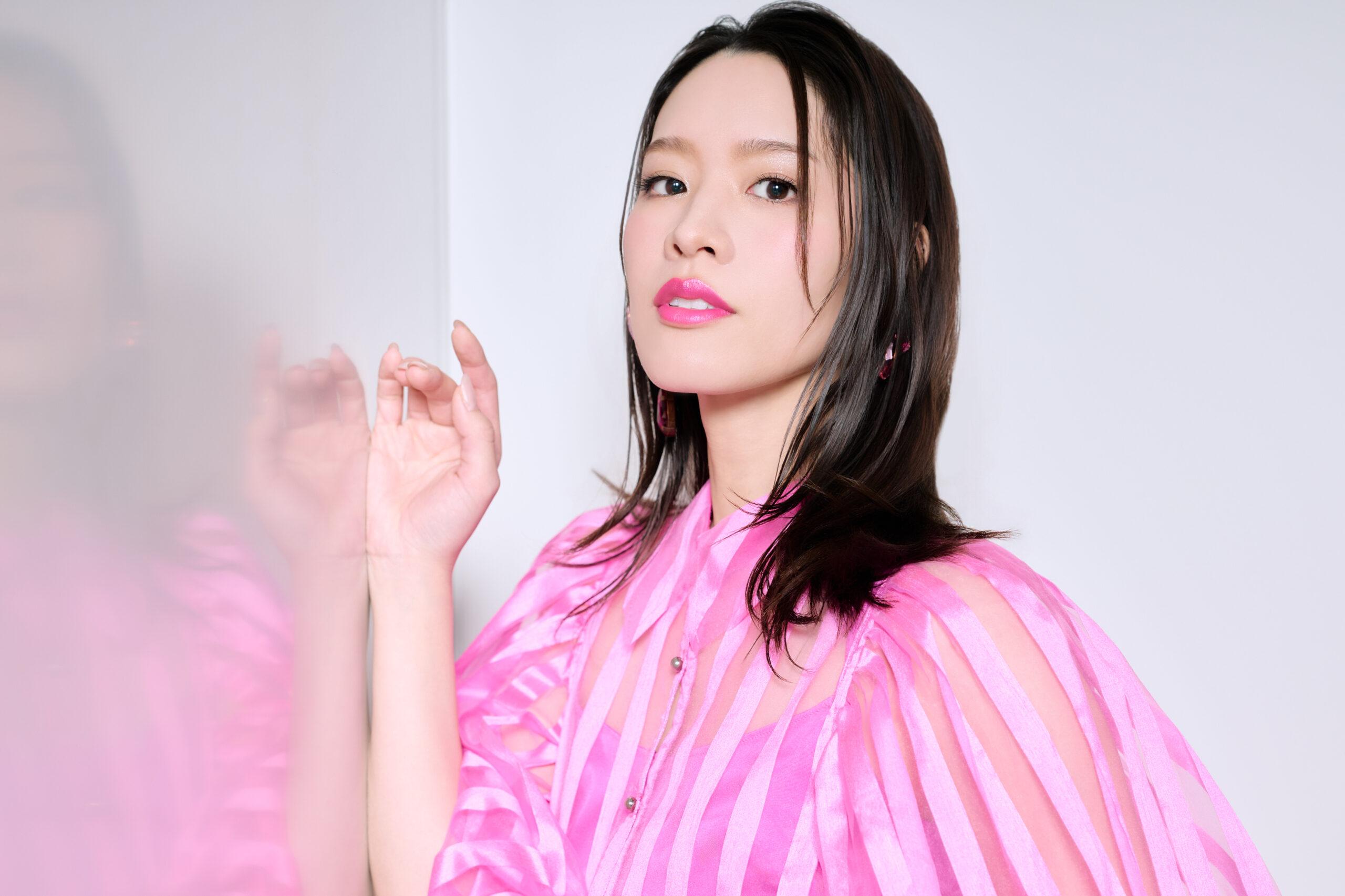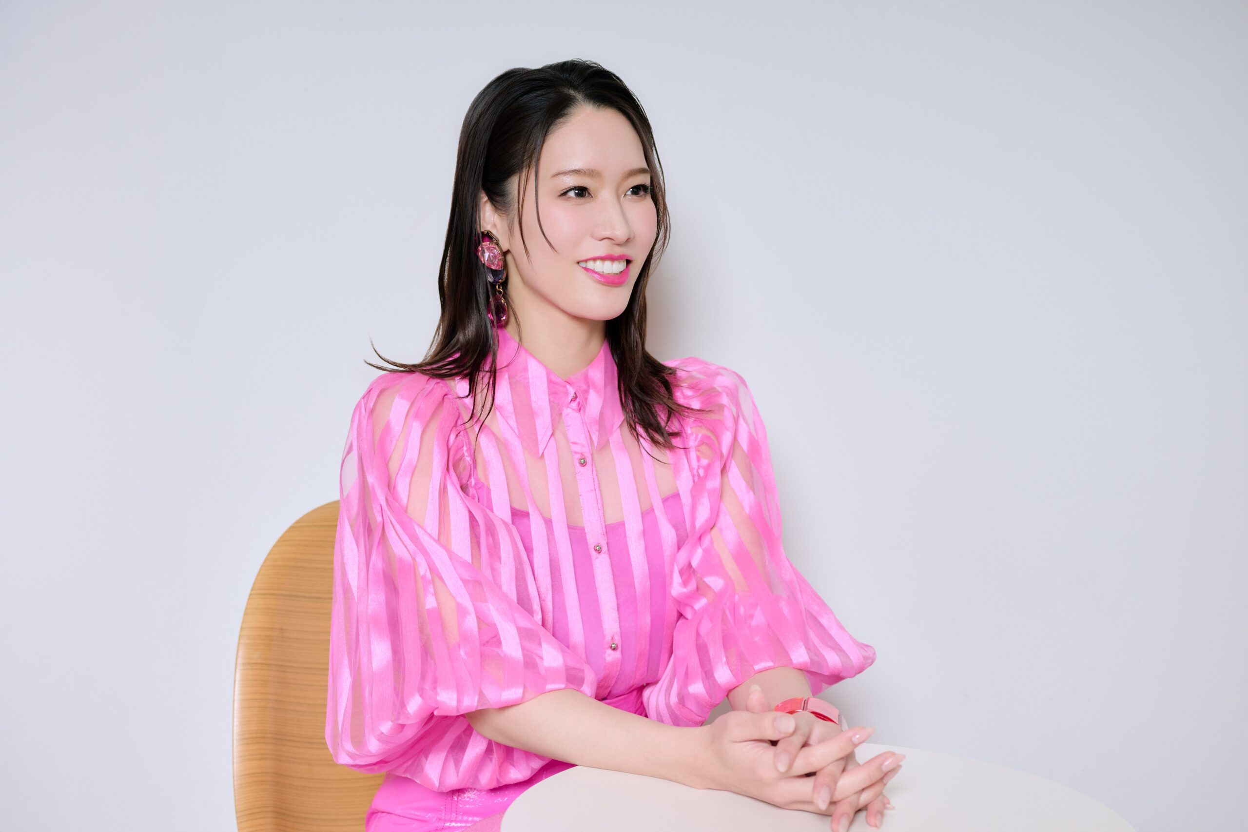 この日はビジュアル撮影もあり、和希さんは目の覚めるようなピンクのドレス姿で登場。「ピンクは大好きな色なんです。役のイメージも膨らみますね」 ©はぎひさこ