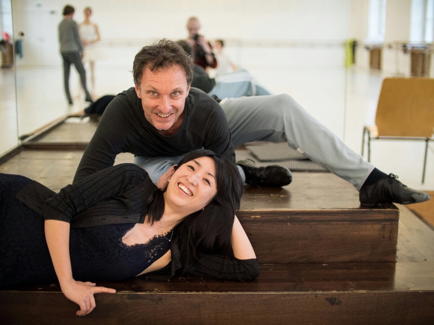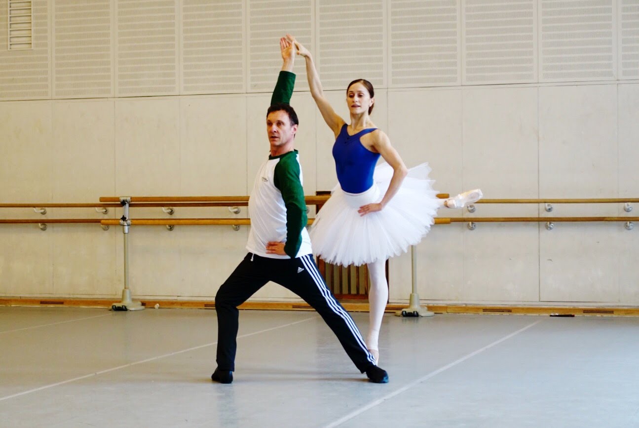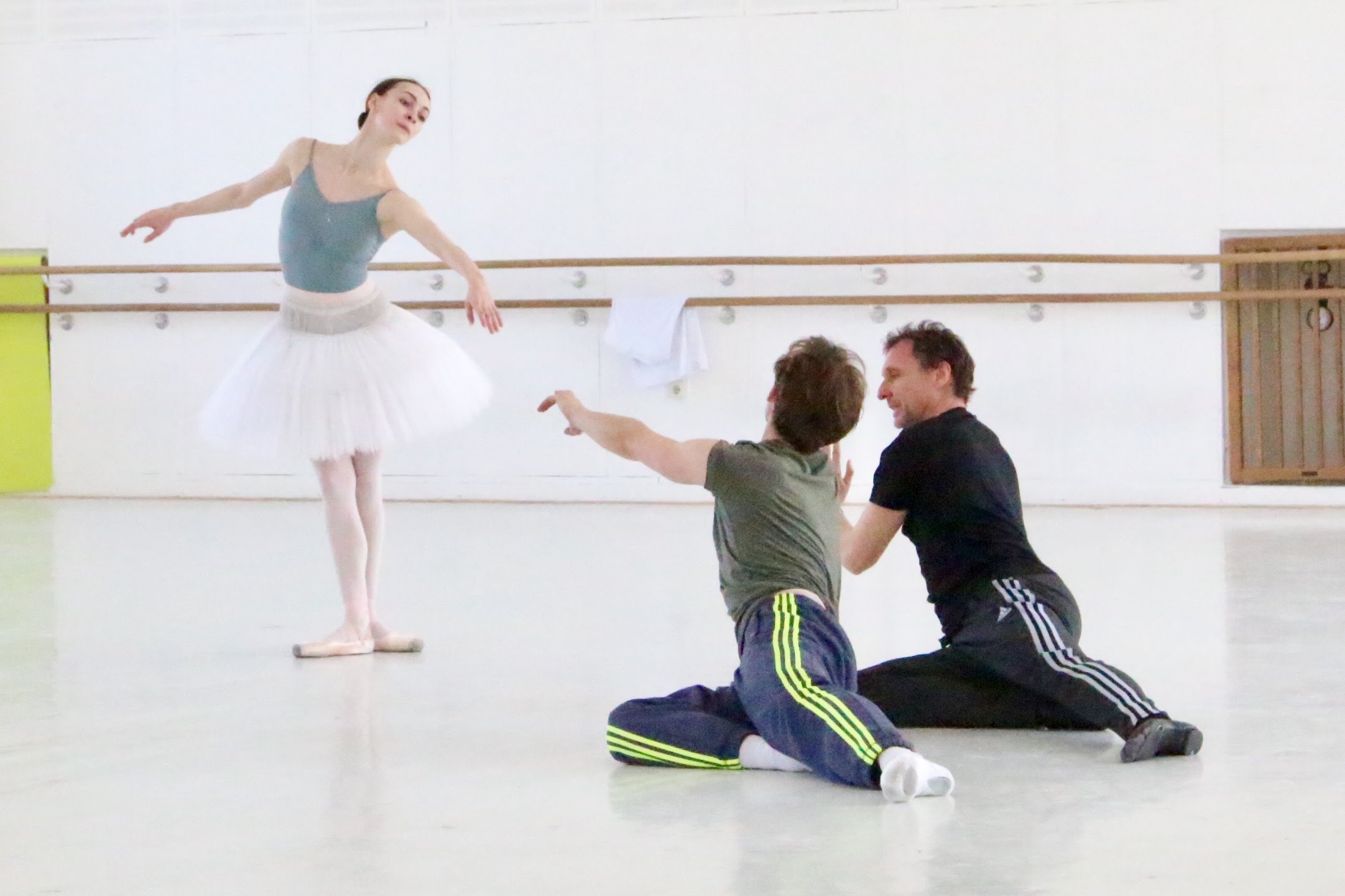 こちらは2017年「白鳥の湖」の時。客演のオルガ・スミルノワさんとセミョーン・チュージンさんとのリハーサル風景より